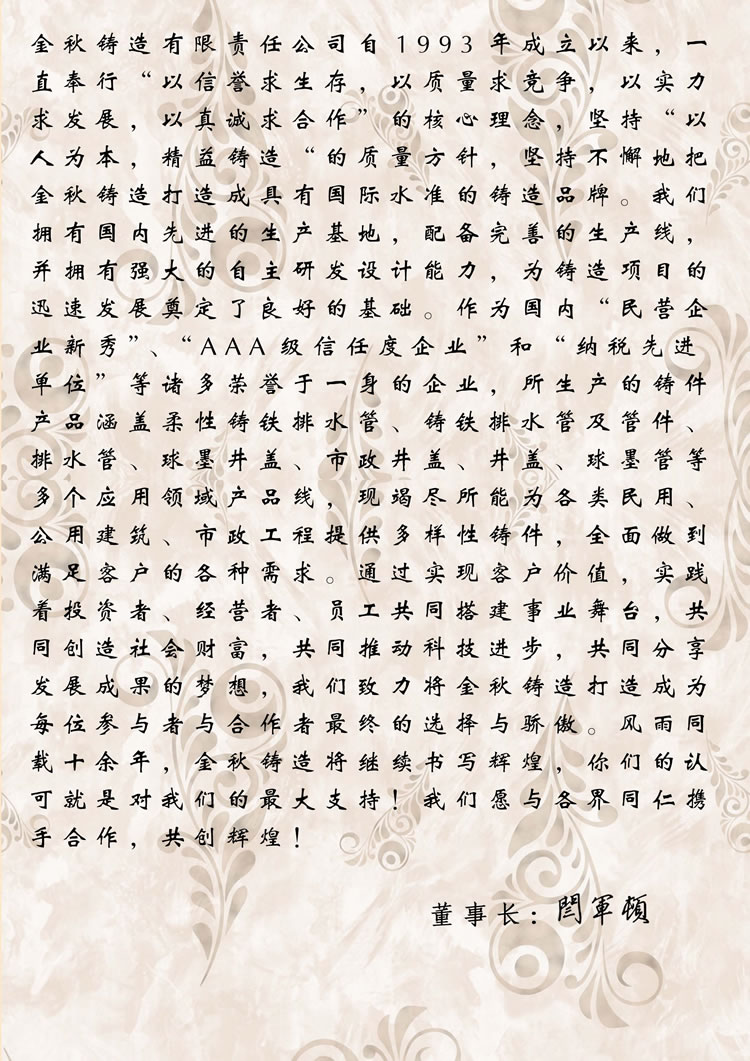 鑄造行業(yè)優(yōu)秀品牌 1993年成立 自營出口業(yè)務(wù) 產(chǎn)品暢銷全球